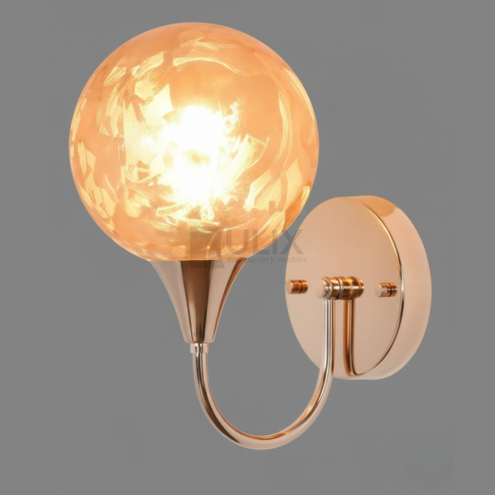APLIQUE 1L E27 DORADO BRAZO CURVO C/ GLOBO
