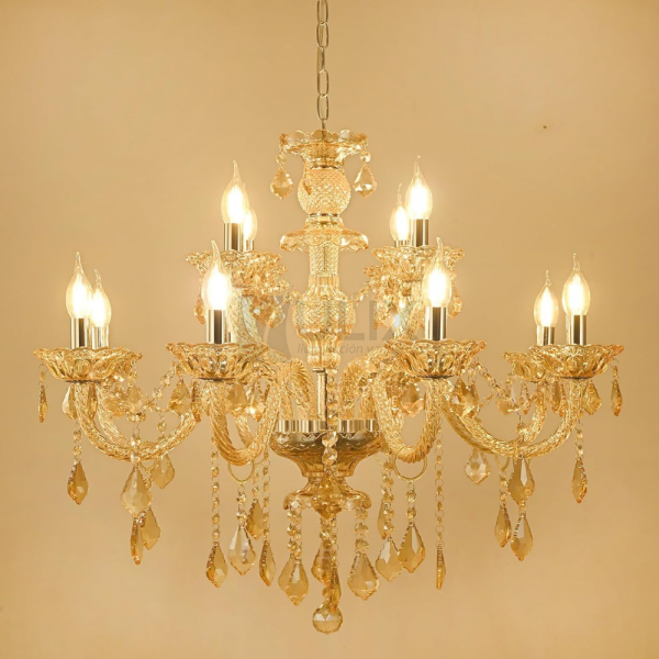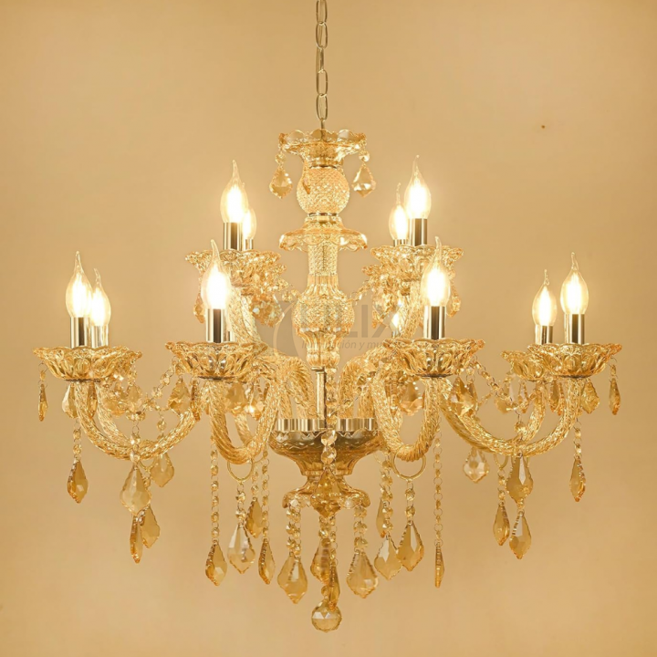COLGANTE 12L E14 TIPO ARAÑA C/ CRISTALES AMBAR