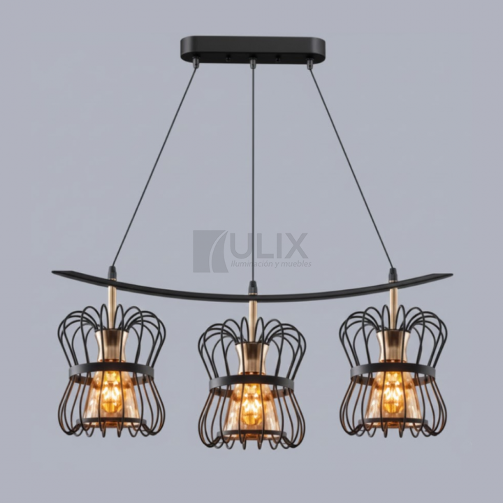 COLGANTE 3L E27 LINEAL CURVO C/ CABEZALES