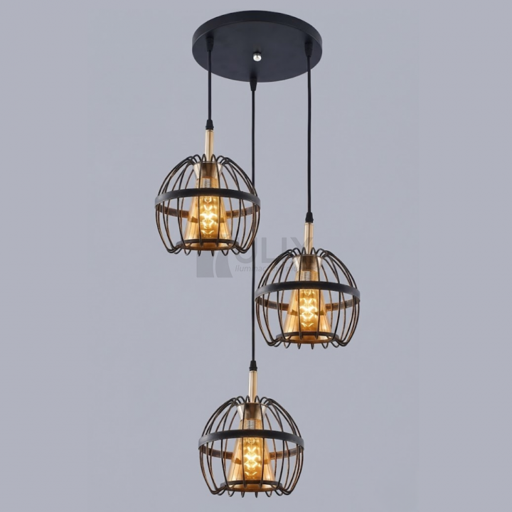 COLGANTE 3L E27 NEGRO BASE REDONDA CABEZAL