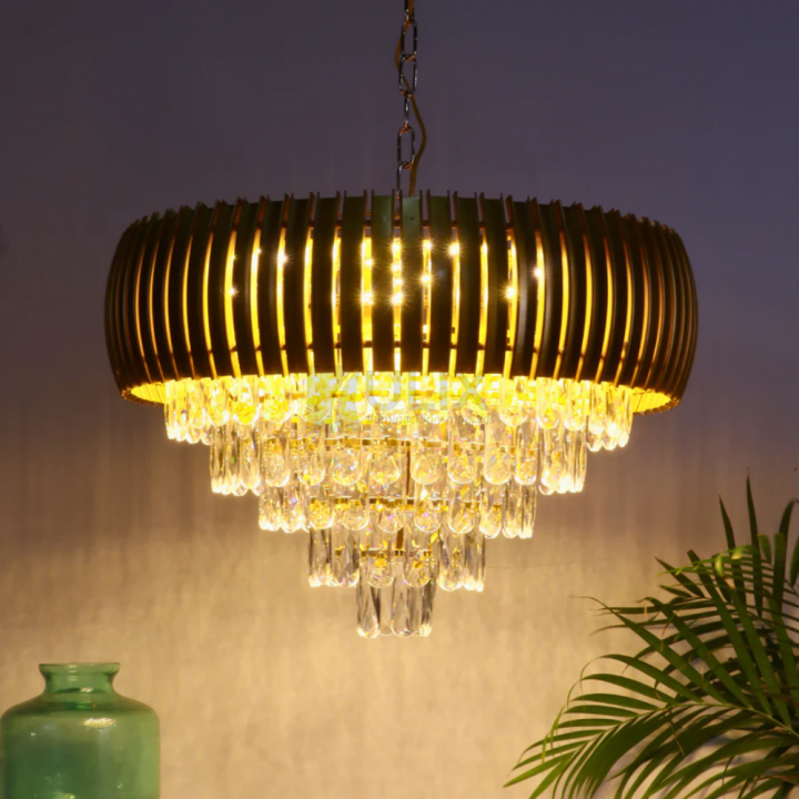 COLGANTE 9L E14 DORADO METALICO C/ CRISTALES