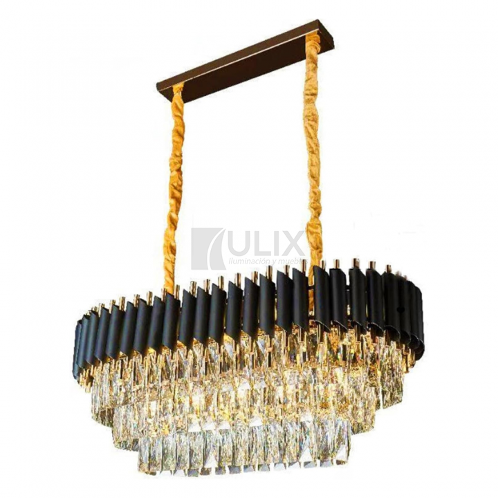 COLGANTE CRISTAL OVALADO 14L DORADO Y NEGRO