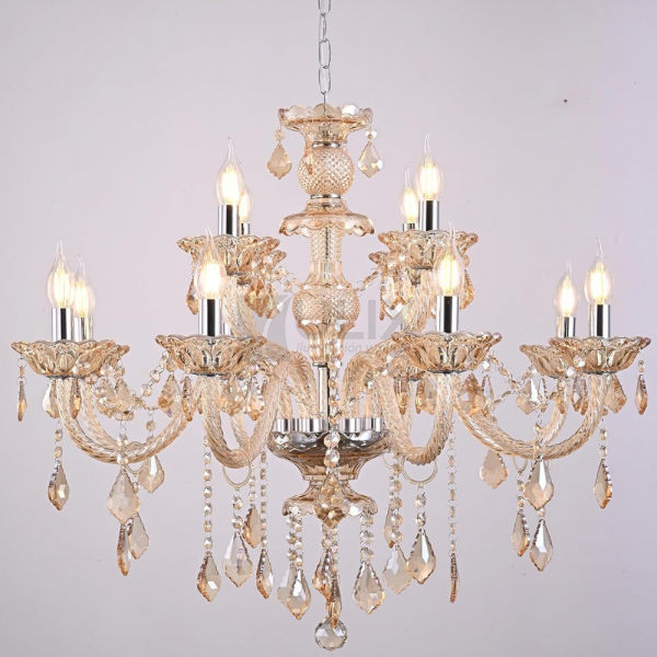 LAMPARA 12L E14 TIPO ARAÑA C/ CRISTALES TRANSPARENTE